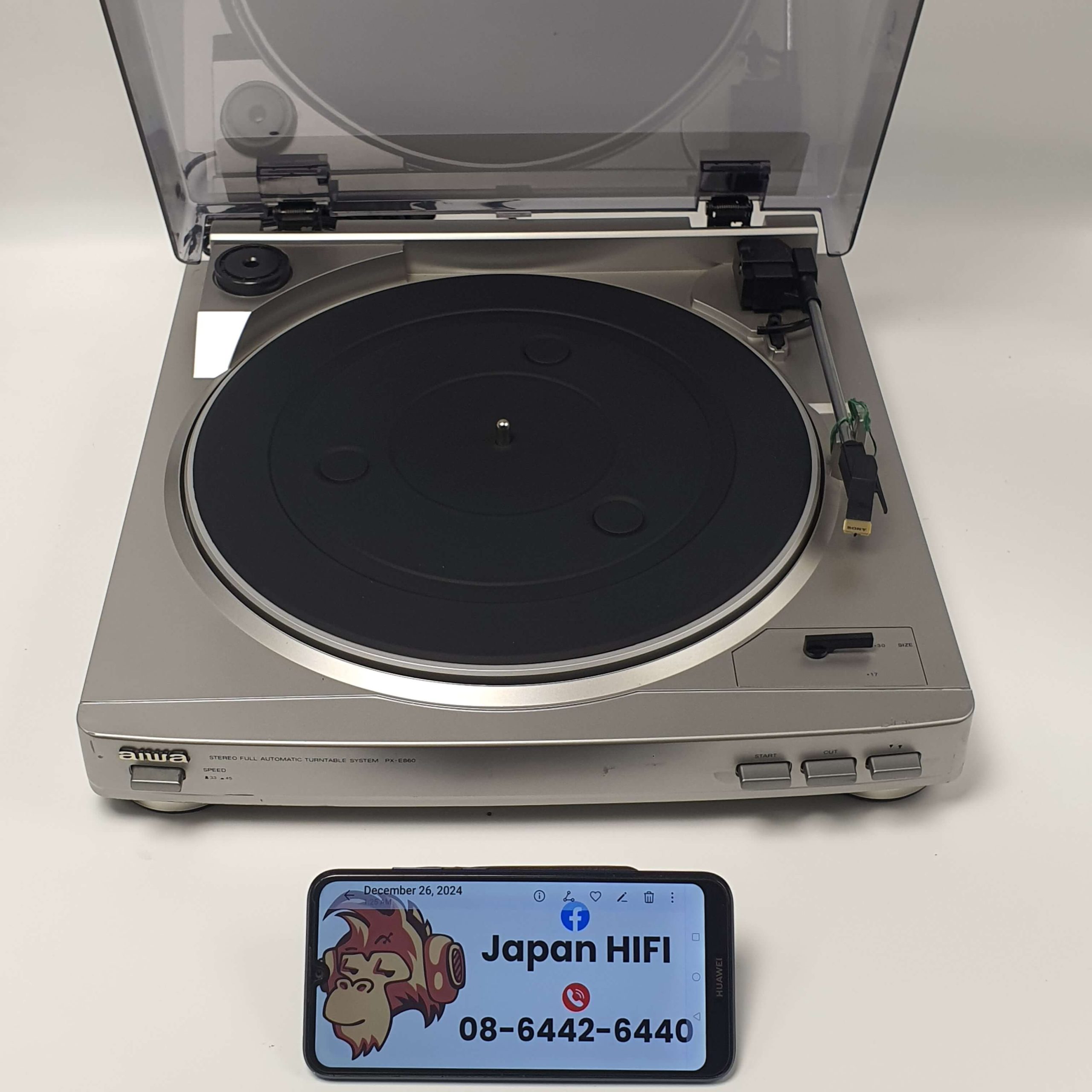 AIWA PX-E860 คือเครื่องเล่นแผ่นเสียงระบบ Fully Automatic Belt Drive Turntable ที่มาพร้อม Phono Equalizer / Pre-Amp ในตัว ทำให้สามารถต่อเข้ากับแอมป์ทั่วไปหรือชุดลำโพงที่ไม่มีช่อง Phono ได้ทันทีโดยไม่ต้องใช้ Pre-Phono เพิ่มเติม เหมาะทั้งสำหรับผู้ที่เริ่มเล่นแผ่นเสียงและผู้ที่ต้องการเสียงอนาล็อกจากแผ่นไวนิลแบบคลาสสิกได้ง่าย ๆ